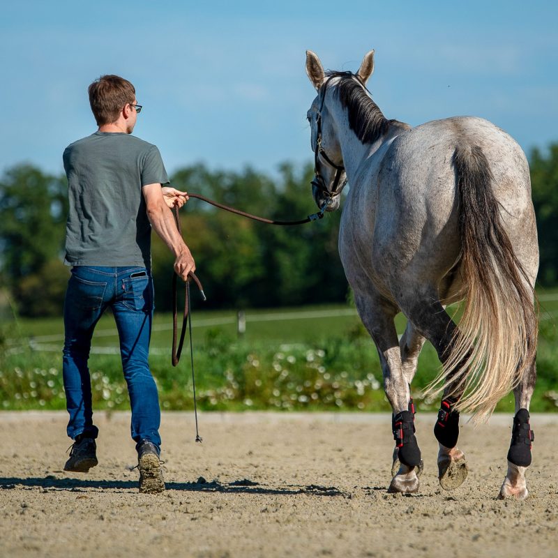 Während der Messung werden sämtliche Bewegungen des Pferdebeins präzise erfasst. Die hochsensiblen Sensoren analysieren jeden einzelnen Schritt und jede Gangart – ganz gleich, ob das Pferd geritten wird oder vom Boden aus gearbeitet.